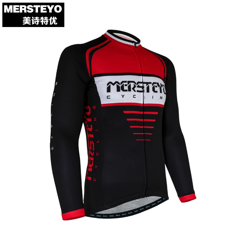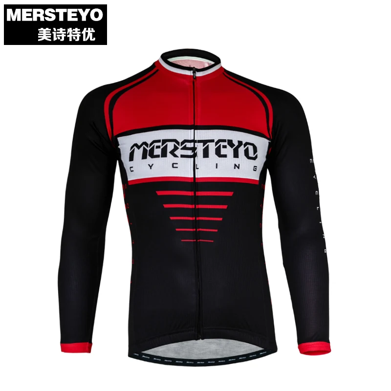 ORIGINAL MERSTEYO Pro Men MTB Cycling Jersey Bike Long Sleeve Jersey Black Red Male Sports Bicycle Clothing