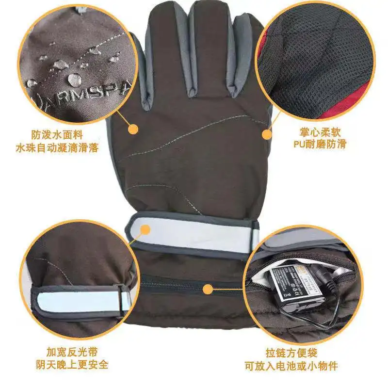 Heat on the back of hand electric heating gloves charging warm heating gloves waterproof windproof